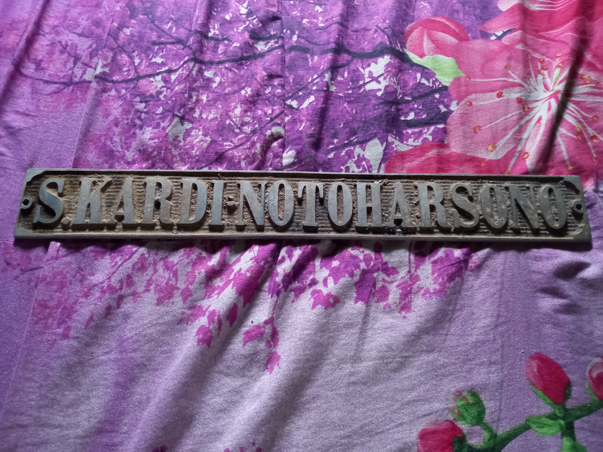 Papan nama S. KARDI NOTOHARSONO ...dimensi panjang -+ 43,3 cm...lebar -+5,5cm... dijual dengan kondisi apa adanya(sesuai foto)...Harga 125 ribu,belum termasuk ongkos kirim...Minat wa 08156705631